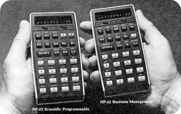 Both hand-helds come complete with battery pack and recharger, soft vinyl carrying pouch, and comprehensive owner's handbook. In addition, the HP-25 includes a 162-page book of applications programs concerning mathematics, statistics, finance, surveying, navigation, and games. See the HP family of professional hand-helds at quality department stores or campus bookstores. Call 800-538-7922 (in California, 800-662-9862) for the name of the retailer nearest you.