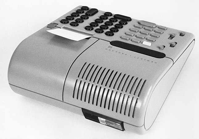 The model shown below was built to Barry's designs by a company that specialized in building precision wood models that were used to create sand or plaster molds. The company had the ability to produce to precision shapes but did no finishing so the forms were cut from wood and then returned to HP for sanding, painting and final assembly. The keyboards came off so the keys could be rearranged. (You can't see it in the picture but the area under keypad was recessed to serve as a carrying handle.)