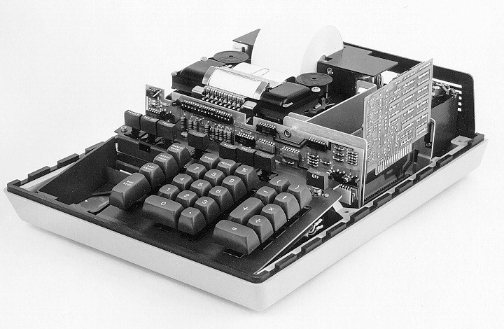 Picture of the final HP-9805 showing ROM cartridge insertion