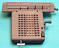 The first stepped drum calculators were made in wooden boxes (see the Burkhardt below), but the model shown was an improved metal-cased model that was made in 1909. Because of their bulk, sales of these early machines were relatively small. (Dozens to hundreds per year.) Price was another obstacle. In today's dollars, a TIM would be priced at well over $10,000.
