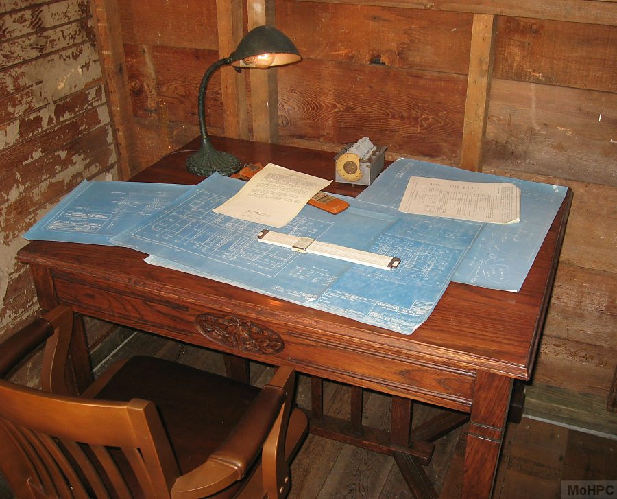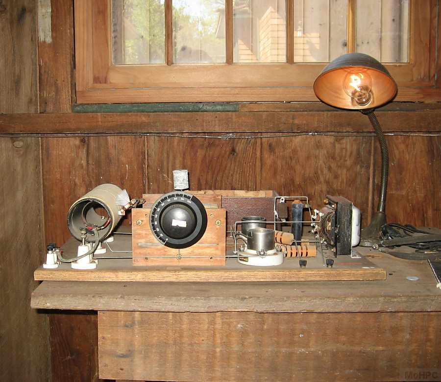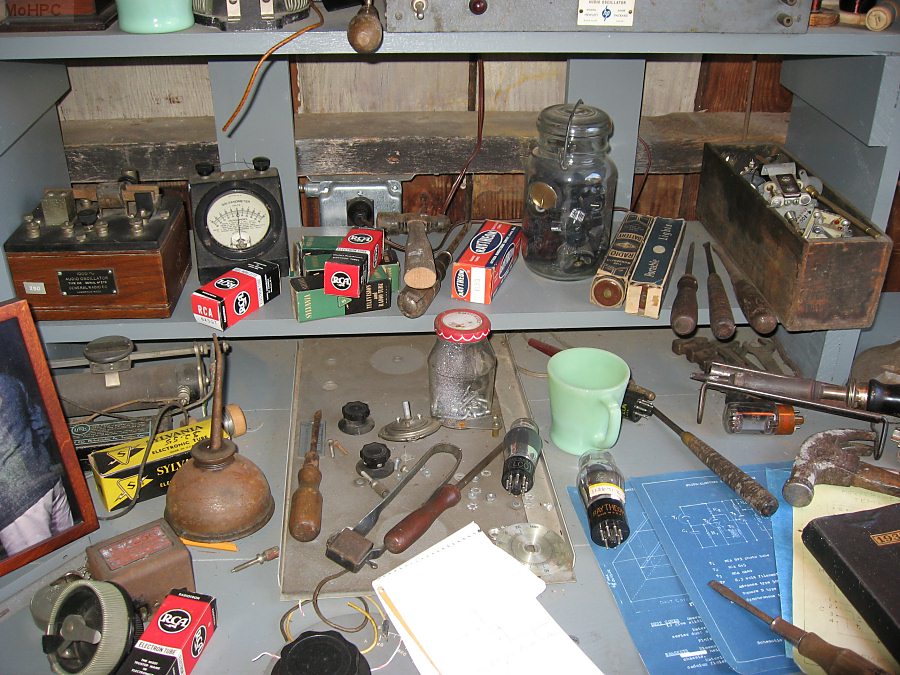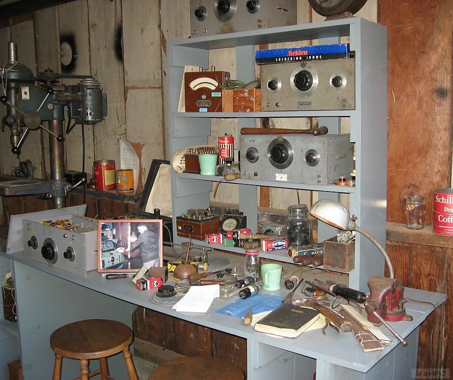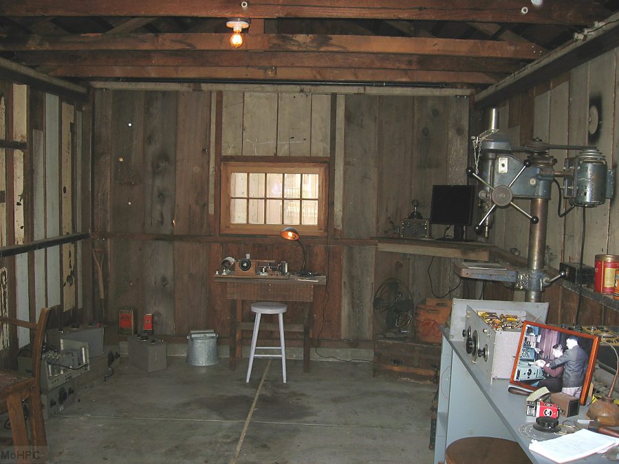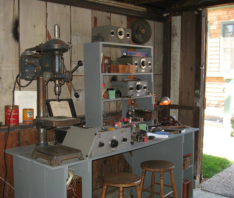 At the end of the garage is a radio set. Dave Packard had an interest in radio since his childhood and some wiring that appeared to be an antenna was found while restoring the garage so it is believed that Dave engaged in his hobby here as well.