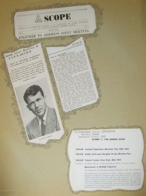 An oscillator on the mantel? No home is complete without one! When Bill and Dave sent out their first marketing material. the oscillator was placed on the mantel for a photograph. They didn't expect much of a response from their first attempt but they did receive orders - including orders with checks.