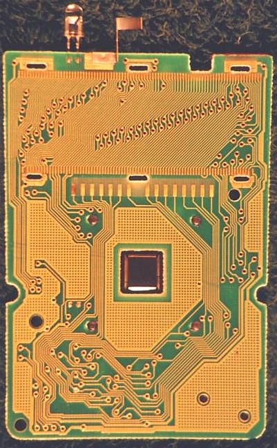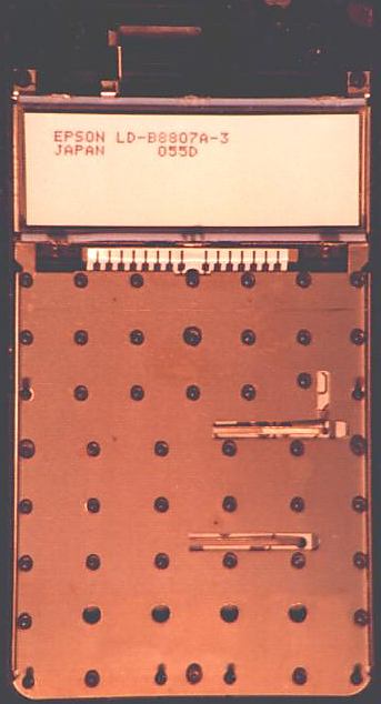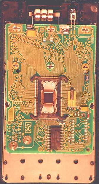 to front of calculator (~53K) Note CPU held in place by plastic backbone.