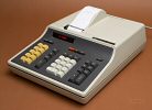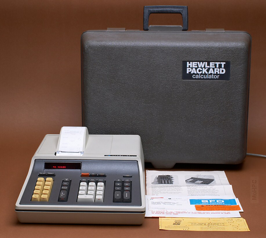 The HP-46 was a printing version of the HP-45. It was built like a real tank with a structural foam case and used a contactless keyboard with keys that looked and felt like those of a selectric typewriter. The impact printer used adding machine paper and printed using a red/black ribbon.