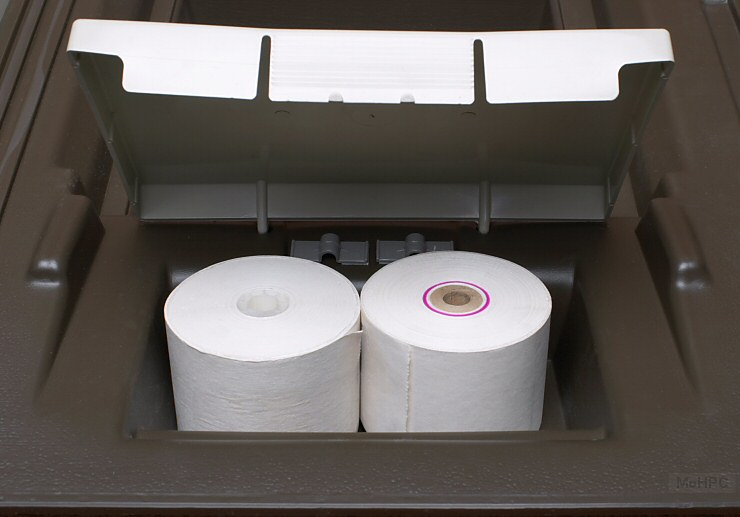 Picture of the paper rolls under the cover above |