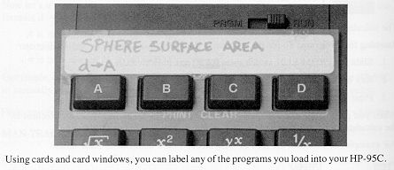 Like previous high-end calculators, the HP-95C came with a way to label the keys A-D. A small (non-magnetic) "program card" could be labeled and then slipped into a clear card which fit above and around the top row of keys.