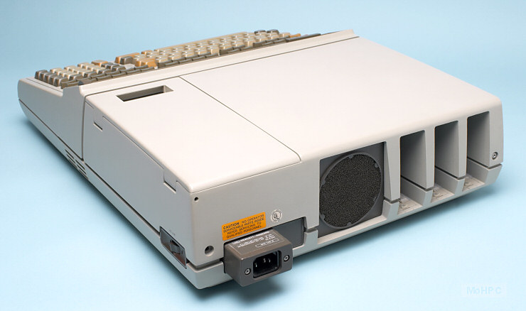(~105K) Three ROM modules are installed below the keyboard. The disk drive