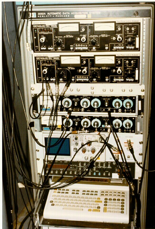 Picture of an HP 9825 controlling a large data acquisition system. |