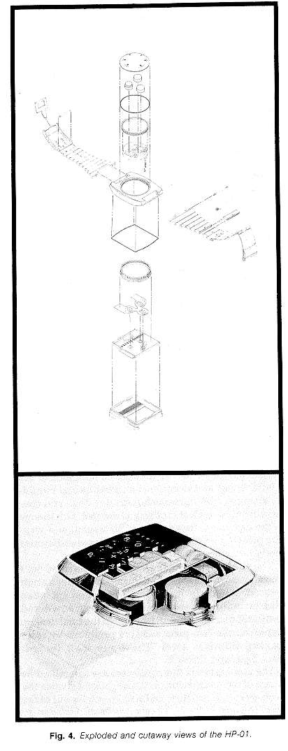 Fig. 4 shows cutaway and exploded views of the HP-01.