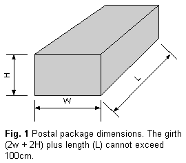 You are designing a box that will be, used to mail widgets. You want the box to have dimensions that will contain the largest volume of widgets while still being acceptable for shipment by the postal carrier. The postal restrictions stipulate that the sum of the length and girth (perimeter of the cross section) cannot exceed 1 00 centimeters. Referring to Fig. 1, and since you will have maximum volume when the length plus girth equals 100, you can use the following equations: