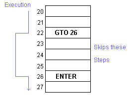 The HP-25 has instructions for comparing X to Y and X to 0. If the comparison is true the calculator executes the next instruction. If the comparison is false the calculator skips the next instruction.