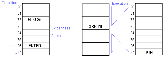 The HP-33 has instructions for comparing X to Y and X to 0. If the comparison is true the calculator executes the next instruction. If the comparison is false the calculator skips the next instruction.