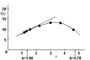 This program incorporates four routines for numerical analysis of user specified functions. Suppose the figure below represents a known function of x called f(x).