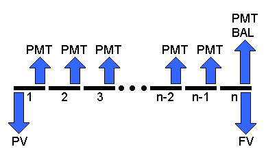 In the diagram above, the horizontal line represents the time period(s) involved, while the arrows represent the cash flows.