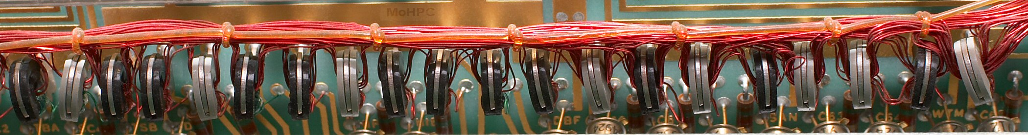 The first question many people ask when seeing core memory is how all the tiny cores (typically 1/30" in diameter) got threaded on all those wires. The answer in most cases is: by hand. Core threading was a delicate and laborious process, however, in the U.S. alone, about 25 billion cores were threaded annually by the late 1960's.