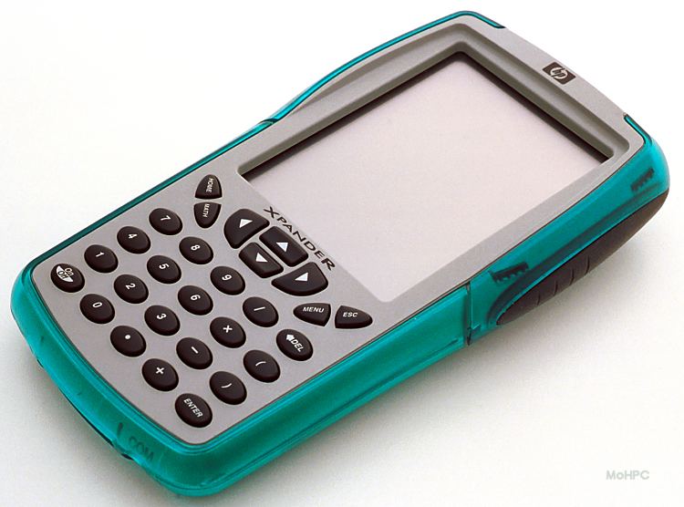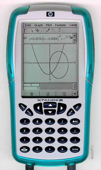 So began a document given out at the HP Xpander learning Summit in mid 2000. The Xpander was a dramatic departure from HP's Saturn/RPL-based calculators. It used a Hitachi SH3 processor, 8MB of RAM, 16MB of ROM and Windows CE to host a number of applications designed for learning math. The device looked like a PDA with a 240 x 320 pixel gray-scale screen, a numeric keypad and a hard slide-on cover. Most work was done on-screen with a stylus. It also provided a compact flash slot and used rechargeable batteries. Every Xpander came with a port that allowed its screen to be projected for the classroom.